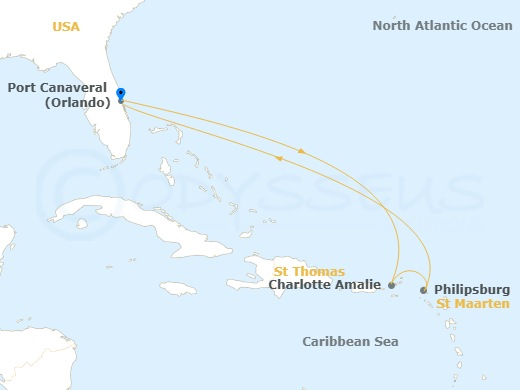 Orlando (Port Canaveral), Fl | Charlotte Amalie, St Thomas | Philipsburg, St Maarten | Orlando (Port Canaveral), Fl