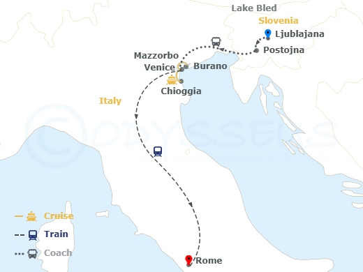 Ljubljana | Ljubljana | Ljubljana (Lake Bled) | Ljubljana (Postojna), Transfer to Venice | Venice | Venice (Padua), Mazzorbo (Burano) | Mazzorbo, Burano, Chioggia | Chioggia | Chioggia, Venice | Venice | Venice