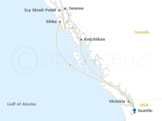 Seattle | Klawock | Sitka | Icy Strait Point | Skagway | Juneau | Ketchikan | Prince Rupert | Victoria | Seattle
