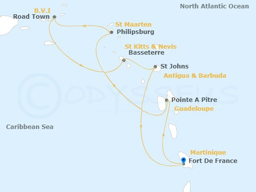 Fort De France Martinique | Pointe-A-Pitre Guadeloupe | Philipsburg St Maarten | Road Town (Tortola) British Virgin Islands | Basseterre St Kitts & Nevis | St Johns Antigua And Barbuda | Fort De France Martinique