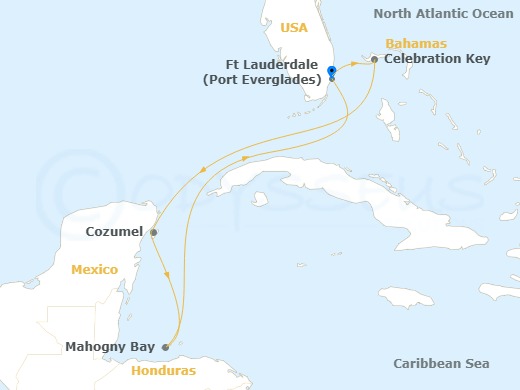 Ft Lauderdale, Florida | Celebration Key, Bahamas | Cozumel, Mexico | Roatan (Mahogany Bay, Honduras | Ft Lauderdale, Florida