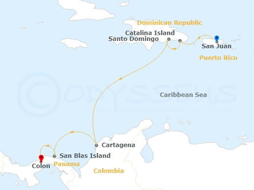 San Juan | Isla Catalina | Santo Domingo | Cartagena | Cartagena | San Blas, Panama | Colon