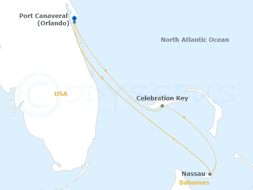 Port Canaveral (Orlando), Fl | Nassau, The Bahamas | Celebration Key, The Bahamas | Port Canaveral (Orlando), Fl
